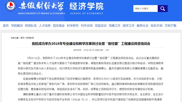 7月30-31日,我司蒲剛清博士應(yīng)邀參加應(yīng)邀參加安徽財(cái)經(jīng)大學(xué)2018年專業(yè)建設(shè)和教學(xué)改革研討會(huì)暨“新經(jīng)管”工程建設(shè)師資培訓(xùn)會(huì),此次會(huì)議重點(diǎn)圍繞實(shí)施“新經(jīng)管”建設(shè)和本科人才培養(yǎng)方案修訂下的課堂教學(xué)改革、課程改革和師資隊(duì)伍建設(shè)等議題進(jìn)行研討和培訓(xùn)。學(xué)院任課教師和部分研究生代表30余人參加會(huì)議。